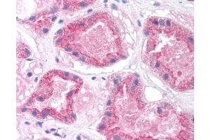 Usage: Immunohistochemistry: This antibody was validated for use in immunohistochemistry on a panel of 21 formalin-fixed, paraffin-embedded (FFPE) human tissues after heat induced antigen retrieval in pH 6.0 citrate buffer. After incubation with the primary antibody, slides were incubated with biotinylated secondary antibody, followed by alkaline phosphatase-streptavidin and chromogen. The stained slides were evaluated by a pathologist to confirm staining specificity. The optimal working concentration for this antibody was determined to be 5 μg/mL. -