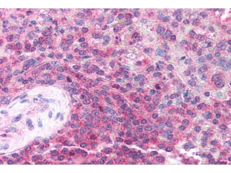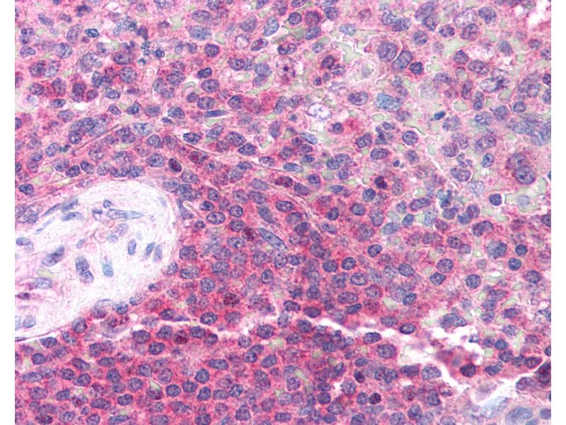 Usage: Immunohistochemistry: This antibody was validated for use in immunohistochemistry on a panel of 21 formalin-fixed, paraffin-embedded (FFPE) human tissues after heat induced antigen retrieval in pH 6.0 citrate buffer. After incubation with the primary antibody, slides were incubated with biotinylated secondary antibody, followed by alkaline phosphatase-streptavidin and chromogen. The stained slides were evaluated by a pathologist to confirm staining specificity. The optimal working concentration for this antibody was determined to be 2.5 μg/mL. -