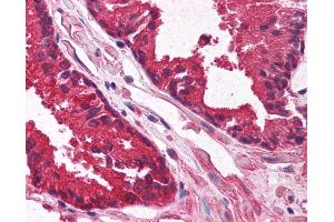 Usage: Immunohistochemistry: This antibody was validated for use in immunohistochemistry on a panel of 21 formalin-fixed, paraffin-embedded (FFPE) human tissues after heat induced antigen retrieval in pH 6.0 citrate buffer. After incubation with the primary antibody, slides were incubated with biotinylated secondary antibody, followed by alkaline phosphatase-streptavidin and chromogen. The stained slides were evaluated by a pathologist to confirm staining specificity. The optimal working concentration for this antibody was determined to be 5 μg/mL. -