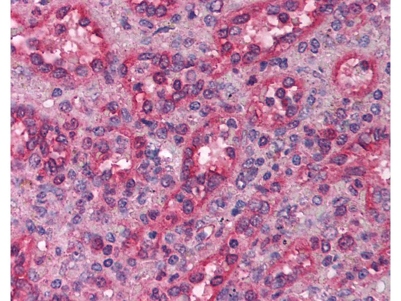 Usage: Immunohistochemistry: This antibody was validated for use in immunohistochemistry on a panel of 21 formalin-fixed, paraffin-embedded (FFPE) human tissues after heat induced antigen retrieval in pH 6.0 citrate buffer. After incubation with the primary antibody, slides were incubated with biotinylated secondary antibody, followed by alkaline phosphatase-streptavidin and chromogen. The stained slides were evaluated by a pathologist to confirm staining specificity. The optimal working concentration for this antibody was determined to be 5 μg/mL. -