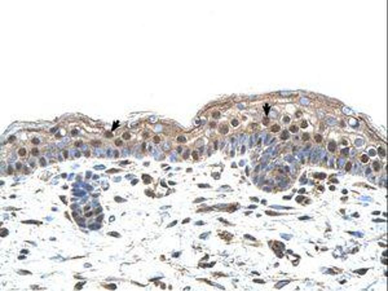 Synthetic peptide from N-Terminus of human IRF4 (Q15306, NP_002451). Percent identity by BLAST analysis: Human, Chimpanzee, Gorilla, Gibbon, Monkey, Galago, Marmoset, Mouse, Rat, Elephant, Panda, Bovine, Bat, Horse, Pig, Opossum, Guinea pig, Xenopus (100%), Dog, Rabbit, Turkey, Zebra finch, Chicken, Salmon (92%), Stickleback (90%), Zebrafish (85%).