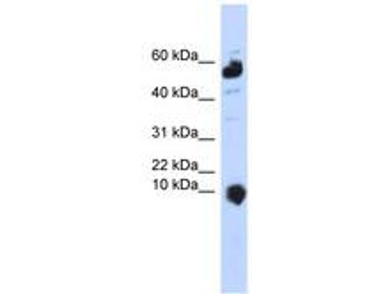 Synthetic peptide from C-Terminus of human MINOS1 (Q5TGZ0, NP_001027535). Percent identity by BLAST analysis: Human, Chimpanzee, Gorilla, Gibbon, Monkey, Galago, Marmoset, Mouse, Rat, Hamster, Elephant, Panda, Dog, Rabbit, Guinea pig (100%), Bat, Horse, Opossum (92%), Zebra finch, Xenopus (91%), Chicken (90%).