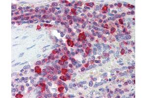 Usage: Immunohistochemistry: This antibody was validated for use in immunohistochemistry on a panel of 21 formalin-fixed, paraffin-embedded (FFPE) human tissues after heat induced antigen retrieval in pH 6.0 citrate buffer. After incubation with the primary antibody, slides were incubated with biotinylated secondary antibody, followed by alkaline phosphatase-streptavidin and chromogen. The stained slides were evaluated by a pathologist to confirm staining specificity. The optimal working concentration for this antibody was determined to be 10 μg/mL. Please note that cross-reactivity with mouse has been confirmed in WB only. The antibody has not been evaluated for use in IHC with mouse samples at this time. -