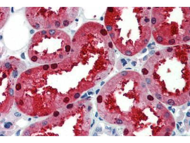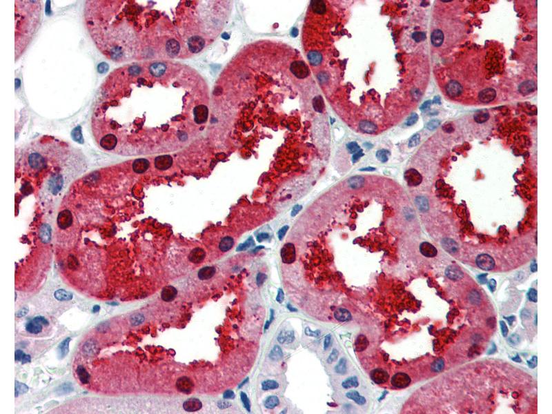 Usage: Immunohistochemistry: This antibody was validated for use in immunohistochemistry on a panel of 21 formalin-fixed, paraffin-embedded (FFPE) human tissues after heat induced antigen retrieval in pH 6.0 citrate buffer. After incubation with the primary antibody, slides were incubated with biotinylated secondary antibody, followed by alkaline phosphatase-streptavidin and chromogen. The stained slides were evaluated by a pathologist to confirm staining specificity. The optimal working concentration for this antibody was determined to be 5 μg/mL. -