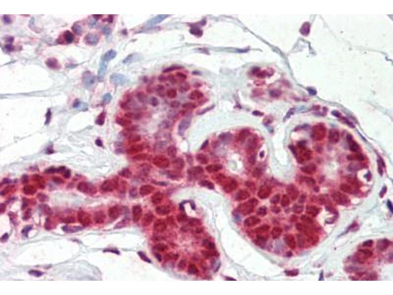 Usage: Immunohistochemistry: This antibody was validated for use in immunohistochemistry on a panel of 21 formalin-fixed, paraffin-embedded (FFPE) human tissues after heat induced antigen retrieval in pH 6.0 citrate buffer. After incubation with the primary antibody, slides were incubated with biotinylated secondary antibody, followed by alkaline phosphatase-streptavidin and chromogen. The stained slides were evaluated by a pathologist to confirm staining specificity. The optimal working concentration for this antibody was determined to be 5 μg/mL. -