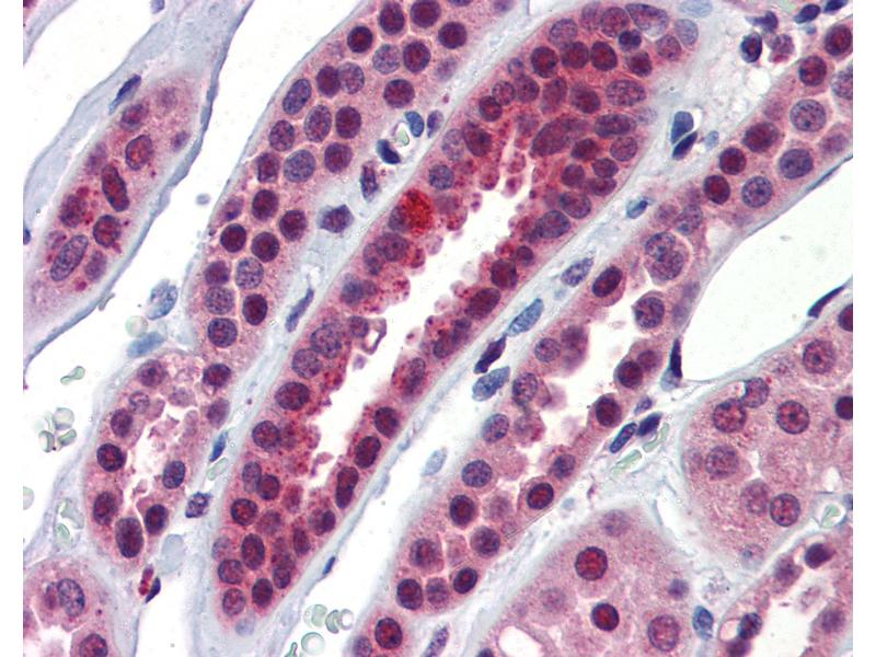 Usage: Immunohistochemistry: This antibody was validated for use in immunohistochemistry on a panel of 21 formalin-fixed, paraffin-embedded (FFPE) human tissues after heat induced antigen retrieval in pH 6.0 citrate buffer. After incubation with the primary antibody, slides were incubated with biotinylated secondary antibody, followed by alkaline phosphatase-streptavidin and chromogen. The stained slides were evaluated by a pathologist to confirm staining specificity. The optimal working concentration for this antibody was determined to be 5 μg/mL. Western Blot: Suggested dilution at 1 μg/mL in 5 % skim milk / PBS buffer, and HRP conjugated anti-Rabbit IgG should be diluted in 1:50000 - 100000 as second antibody. ELISA titer in peptide based assay: 1:312500. -