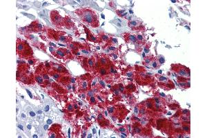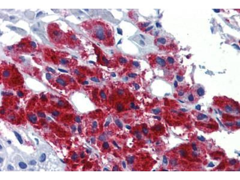 Usage: Immunohistochemistry: This antibody was validated for use in immunohistochemistry on a panel of 21 formalin-fixed, paraffin-embedded (FFPE) human tissues after heat induced antigen retrieval in pH 6.0 citrate buffer. After incubation with the primary antibody, slides were incubated with biotinylated secondary antibody, followed by alkaline phosphatase-streptavidin and chromogen. The stained slides were evaluated by a pathologist to confirm staining specificity. The optimal working concentration for this antibody was determined to be 5 μg/mL. -