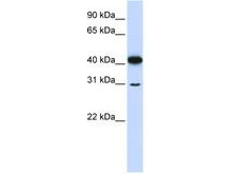 Synthetic peptide from N-Terminus of human OVOL2 (Q9BRP0, NP_067043). Percent identity by BLAST analysis: Human, Gibbon, Galago, Marmoset, Panda, Dog, Bovine, Rabbit, Horse, Pig (100%), Mouse, Elephant (92%), Opossum (90%), Rat (85%), Xenopus (80%).