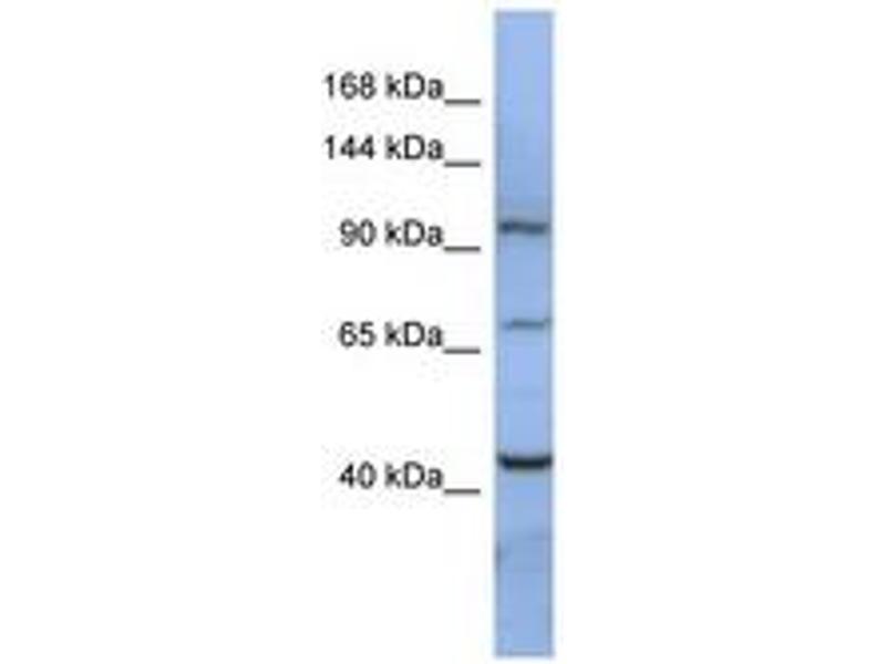 Synthetic peptide located between aa107-156 of human RBM12 (Q9NTZ6, NP_006038). Percent identity by BLAST analysis: Human, Chimpanzee, Gorilla, Orangutan, Gibbon, Baboon, Monkey, Galago, Marmoset, Mouse, Elephant, Bat (100%), Rat, Shrew, Panda, Dog, Bovine, Rabbit, Horse, Opossum, Armadillo, Lizard (92%), Guinea pig (85%), Turkey, Zebra finch, Chicken (84%).