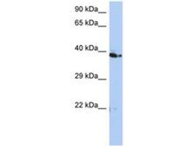 Synthetic peptide from C-Terminus of human CACUL1 (Q86Y37, NP_722517). Percent identity by BLAST analysis: Human, Chimpanzee, Gorilla, Gibbon, Monkey, Galago, Marmoset, Mouse, Rat, Elephant, Panda, Dog, Bat, Rabbit, Horse, Pig, Guinea pig (100%), Bovine, Opossum, Platypus, Xenopus (92%), Turkey, Chicken (85%).