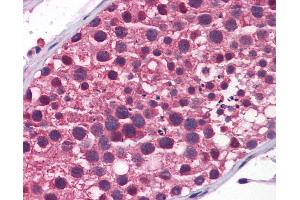 Synthetic peptide located between aa1071-1120 of human TDRD9 (Q8NDG6, NP_694591). Percent identity by BLAST analysis: Human, Chimpanzee, Gorilla, Gibbon, Monkey, Rabbit (100%), Marmoset, Mouse, Rat, Elephant (92%), Opossum (91%), Turkey, Chicken (90%), Galago, Panda, Dog, Horse, Pig, Guinea pig (84%).