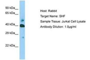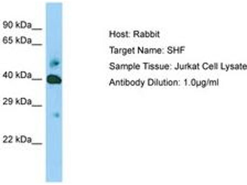 Synthetic peptide located between aa22-71 of human SHF. Percent identity by BLAST analysis: Human, Chimpanzee, Gorilla, Orangutan, Gibbon, Monkey, Galago, Marmoset (100%), Bovine, Bat, Horse, Pig (92%), Elephant, Dog (85%), Mouse (78%).