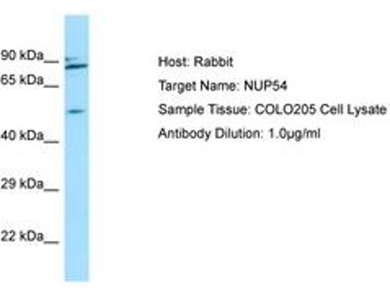 Synonyms: NUP54, 54 kDa nucleoporin, Nucleoporin 54kD, Nucleoporin 54 kDa, Nucleoporin p54 -