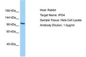 Synthetic peptide located between aa468-517 of human IPO4 (Q8TEX9, NP_078934). Percent identity by BLAST analysis: Human, Chimpanzee, Gorilla, Orangutan, Gibbon, Panda, Dog, Bat, Horse, Guinea pig (100%), Monkey, Galago, Marmoset, Rabbit, Pig (92%), Elephant, Opossum (85%).