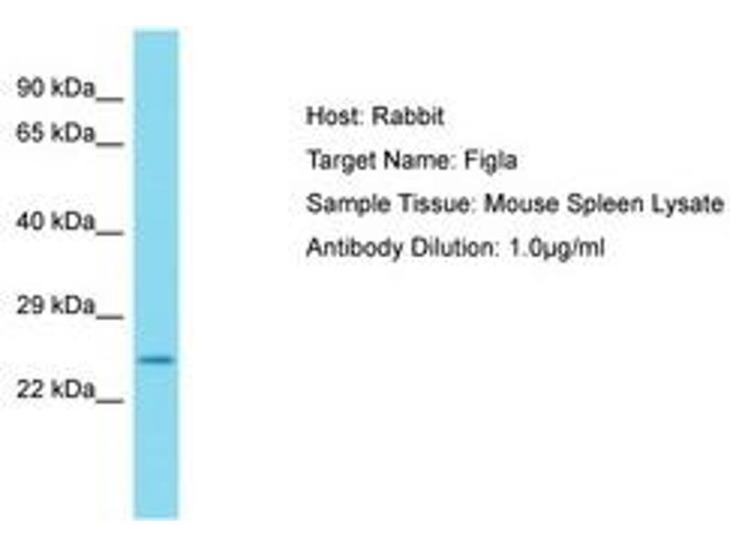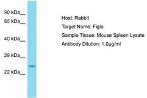 Synthetic peptide from C-Terminus of mouse Figla (O55208, NP_036143). Percent identity by BLAST analysis: Mouse (100%).
