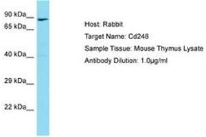 Synthetic peptide located between aa251-300 of mouse Cd248 (Q91V98, NP_473383). Percent identity by BLAST analysis: Mouse (100%).