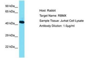 Synthetic peptide located between aa210-259 of human RBMX (P38159, NP_002130). Percent identity by BLAST analysis: Human, Chimpanzee, Rat, Bovine, Rabbit, Horse, Pig, Guinea pig (100%).