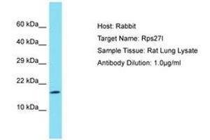 Synthetic peptide from C-Terminus of rat Rps27l. Percent identity by BLAST analysis: Human, Chimpanzee, Mouse, Rat, Bovine, Rabbit, Guinea pig (100%).