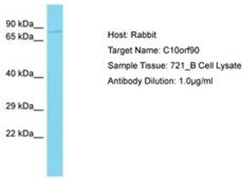 Synthetic peptide located between aa491-540 of human C10orf90 (Q96M02, NP_001004298). Percent identity by BLAST analysis: Human (100%).