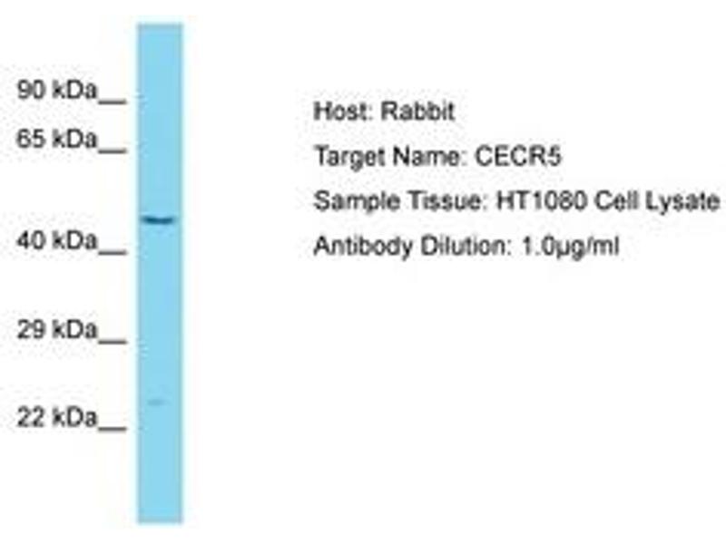 Synthetic peptide located between aa353-402 of human CECR5 (Q9BXW7, NP_149061). Percent identity by BLAST analysis: Human, Chimpanzee (100%).