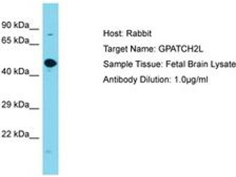 Synthetic peptide located between aa169-218 of human GPATCH2L (Q9NWQ4, NP_060396). Percent identity by BLAST analysis: Human, Chimpanzee (100%).