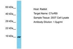 Synthetic peptide located between aa63-112 of human C7orf69 (Q9H7B7, NP_079307). Percent identity by BLAST analysis: Human (100%).