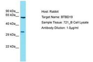 Synthetic peptide located between aa208-257 of human BTBD19 (C9JJ37, NP_001130009). Percent identity by BLAST analysis: Human, Chimpanzee (100%).
