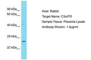 Synthetic peptide located between aa170-219 of human C3orf70 (A6NLC5, NP_001020437). Percent identity by BLAST analysis: Human, Chimpanzee, Bovine, Horse (100%).
