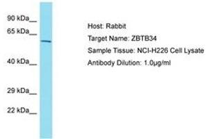 Synthetic peptide located between aa108-157 of human ZBTB34 (Q8NCN2, NP_001092740). Percent identity by BLAST analysis: Human, Chimpanzee (100%).
