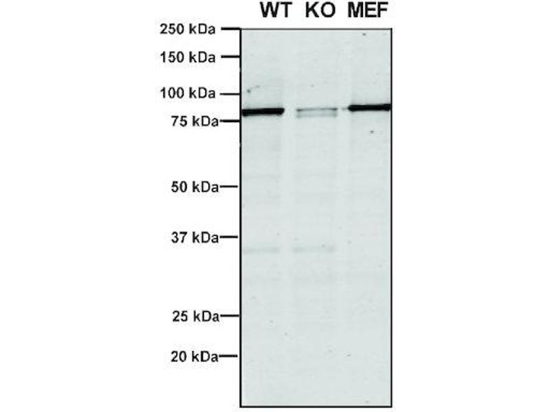 - Ubiquitous. Highly expressed in brain, colon, heart, kidney, ovary, placenta, skeletal muscle, small intestine, testis, thymus.,Detects ~92 kDa.