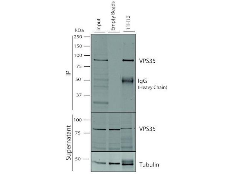 A 1:1000 dilution of ABIN6933008 was sufficient for detection of VPS35 in 10 μg of SH-SY5Y by ECL immunoblot analysis using Goat Anti-Mouse IgG:HRP as the secondary antibody.