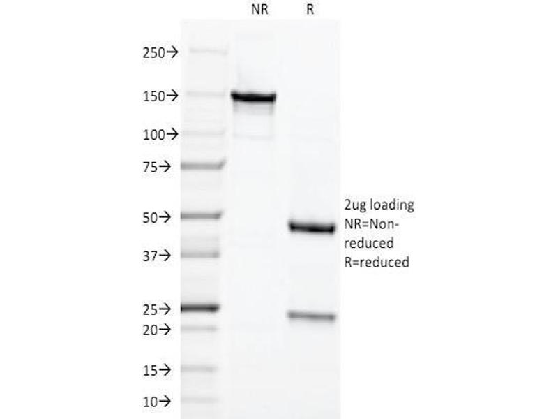 Known Application: Immunohistochemistry (Formalin-fixed) (0.1-0.2 μg/mL for 30 min at RT)(Staining of formalin-fixed tissues requires boiling tissue sections in 10 mM citrate buffer, pH 6.0, for 10-20 min followed by cooling at RT for 20 minutes)Optimal dilution for a specific application should be determined.
