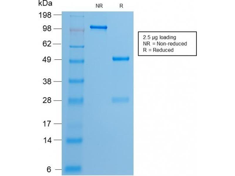 Known Application: Western Blot (0.5-2 μg/mL), ,Immunohistochemistry (Formalin-fixed) (1-2 μg/mL for 30 minutes at RT) ,(Staining of formalin-fixed tissues requires boiling tissue sections in 10 mM citrate buffer, pH 6.0, for 10-20 min followed by cooling at RT for 20 minutes),Optimal dilution for a specific application should be determined.