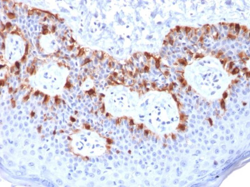 Known Application: Immunohistochemistry (Formalin-fixed) (0.5-1 μg/mL for 30 minutes at RT)(Staining of formalin-fixed tissues is enhanced by boiling tissue sections in 10 mM Citrate Buffer, pH 6.0, for 10-20 min followed by cooling at RT for 20 minutes)Optimal dilution for a specific application should be determined.