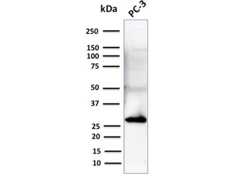 Known Application: Western Blot (1-2 μg/mL), Immunohistochemistry (Formalin-fixed) (0.5-1 μg/mL for 30 min at RT)(Staining of formalin-fixed tissues requires boiling tissue sections in 10 mM Citrate Buffer, pH 6.0, for 10-20 min followed by cooling at RT for 20 minutes)Optimal dilution for a specific application should be determined.