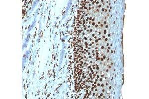 Known Application: Flow Cytometry (1-2 μg/million cells), Immunofluorescence (0.5-1 μg/mL), Immunohistochemistry (Formalin-fixed) (1-2 μg/mL for 30 minutes at RT),(Staining of formalin-fixed tissues requires boiling tissue sections in 10 mM citrate buffer, pH 6.0, for 10-20 min followed by cooling at RT for 20 minutes),Optimal dilution for a specific application should be determined.