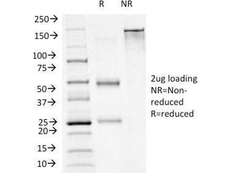 Known Application: Immunohistochemistry (Formalin-fixed) (0.5-1.0 μg/mL for 30 minutes at RT)(Staining of formalin-fixed tissues is enhanced by boiling tissue sections in 10 mM Tris with 1 mM EDTA, pH 9.0 for 10-20 min followed by cooling at RT for 20 minutes)Optimal dilution for a specific application should be determined.