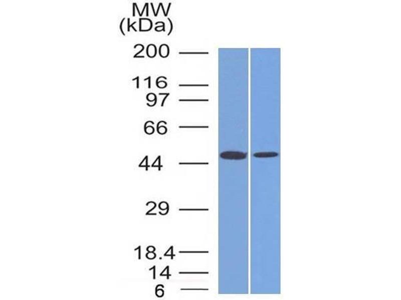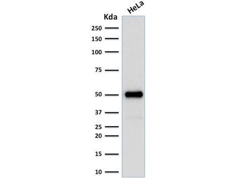 Known Application: Flow Cytometry (0.5-1 μg/million cells), Immunofluorescence (0.5-1 μg/mL), Western Blot (0.5-1 μg/mL), Immunohistochemistry (Formalin-fixed) (1-2 μg/mL for 30 minutes at RT)(Staining of formalin-fixed tissues is enhanced by boiling tissue sections in 10 mM Tris with 1 mM EDTA, pH 9.0 for 10-20 min followed by cooling at RT for 20 minutes)Optimal dilution for a specific application should be determined.