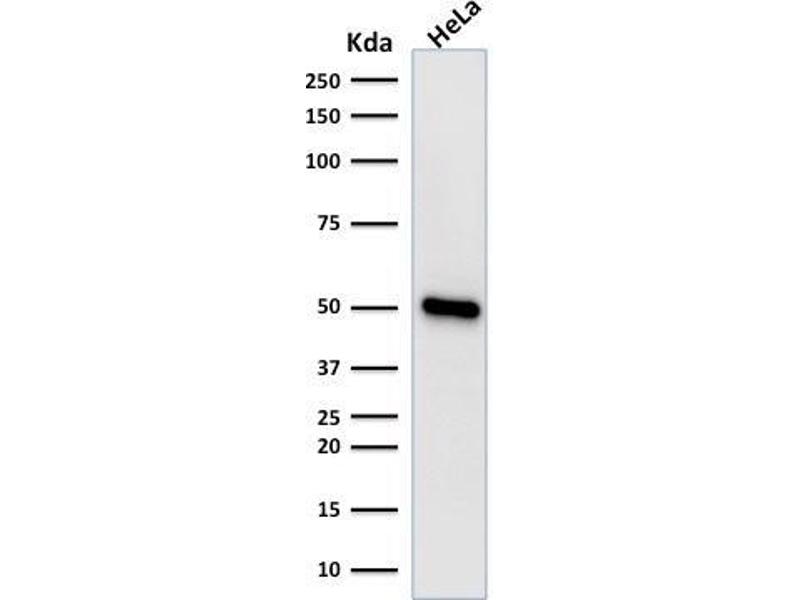 Known Application: Western Blot (1-2 μg/mL), Immunohistochemistry (Formalin-fixed) (1-2 μg/mL for 30 minutes at RT)(Staining of formalin-fixed tissues requires boiling tissue sections in 10 mM Tris with 1 mM EDTA, pH 9.0 for 10-20 min followed by cooling at RT for 20 minutes)Optimal dilution for a specific application should be determined.