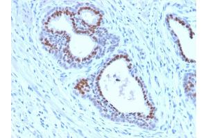 Known Application: Immunohistochemistry (Formalin-fixed) (0.5-1.0 μg/mL for 30 minutes at RT)(Staining of formalin-fixed tissues is enhanced by boiling tissue sections in 10 mM Tris with 1 mM EDTA, pH 9.0 for 10-20 min followed by cooling at RT for 20 minutes)Optimal dilution for a specific application should be determined.