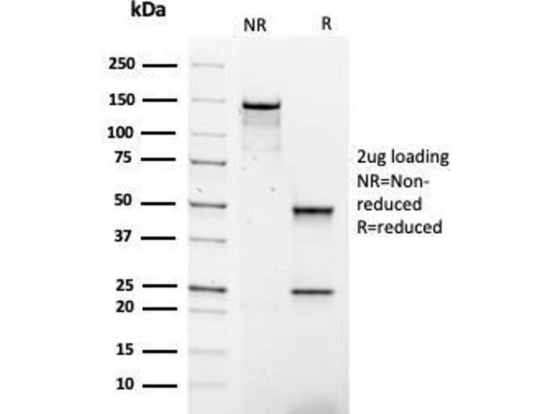Known Application: Immunohistochemistry (Formalin-fixed) (0.5-1.0 μg/mL for 30 minutes at RT)(Staining of formalin-fixed tissues is enhanced by boiling tissue sections in 10 mM Tris with 1 mM EDTA, pH 9.0 for 10-20 min followed by cooling at RT for 20 minutes)Optimal dilution for a specific application should be determined.