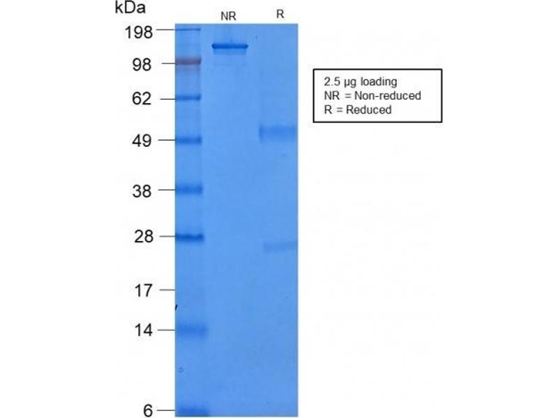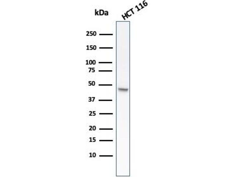 Known Application: Immunohistochemistry (Formalin-fixed) (0.5-1.0 μg/mL for 30 min at RT)(Staining of formalin-fixed tissues requires boiling tissue sections in 10 mM Citrate Buffer, pH 6.0, for 10-20 min followed by cooling at RT for 20 minutes)Optimal dilution for a specific application should be determined.