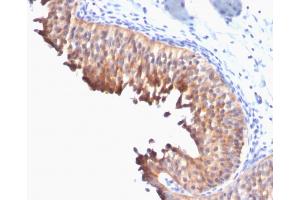 Known Application: Immunohistochemistry (Formalin-fixed) (1-2 μg/mL for 30 min at RT)(Staining of formalin-fixed tissues requires boiling tissue sections in 10 mM citrate buffer, pH 6.0, for 10-20 min followed by cooling at RT for 20 minutes)Optimal dilution for a specific application should be determined.