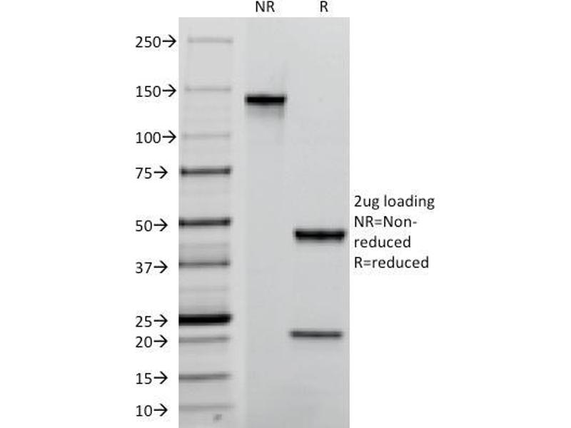 Known Application: Immunofluorescence (1-2 μg/mL), Immunohistochemistry (Formalin-fixed) (1-2 μg/mL for 30 min at RT)(Staining of formalin-fixed tissues requires boiling tissue sections in 10 mM Citrate Buffer, pH 6.0, for 10-20 min followed by cooling at RT for 20 minutes)Optimal dilution for a specific application should be determined.