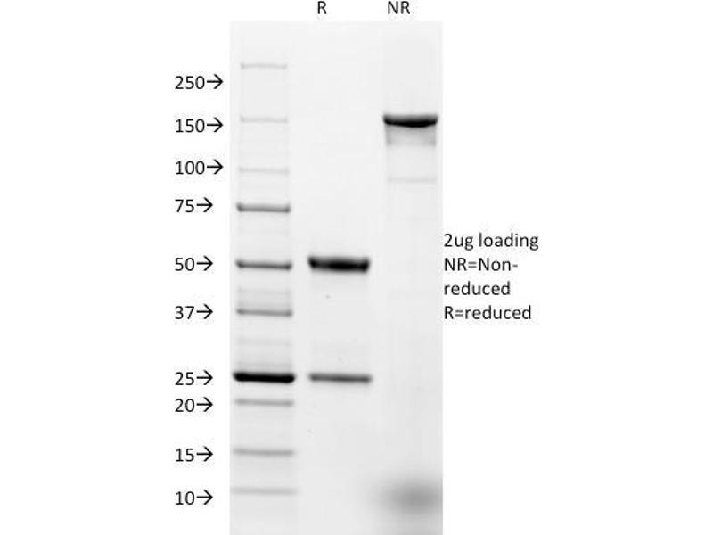 Known Application: ELISA (For coating, order antibody without BSA), Flow Cytometry (0.5-1 μg/million cells), ,Immunofluorescence (1-2 μg/mL), ,Immunohistochemistry (Formalin-fixed) (0.5-1 μg/mL for 30 min at RT),(Staining of formalin-fixed tissues requires boiling tissue sections in 10 mM Citrate Buffer, pH 6.0, for 10-20 min followed by cooling at RT for 20 minutes),Optimal dilution for a specific application should be determined.