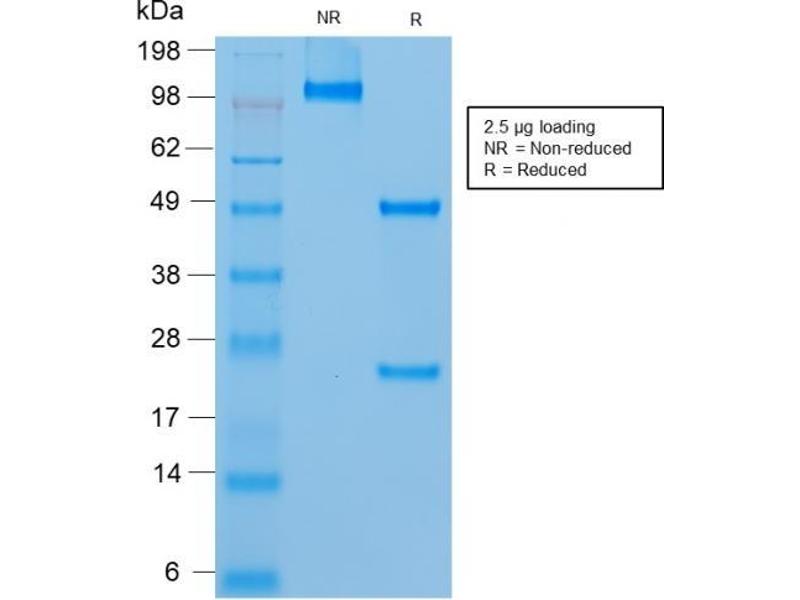 Known Application: Immunohistochemistry (Formalin-fixed) (0.5-1.0 μg/mL for 30 minutes at RT)(Staining of formalin-fixed tissues requires boiling tissue sections in 1 mM EDTA, pH 8.0, for 10-20 min followed by cooling at RT for 20 minutes)Optimal dilution for a specific application should be determined.
