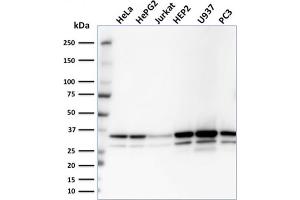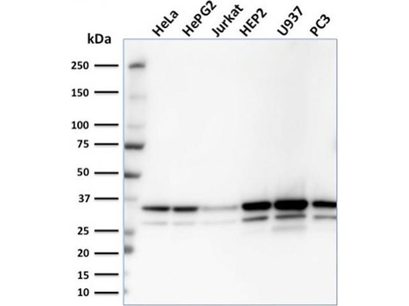 Positive Control: Jurkat or HeLa cell lysates.