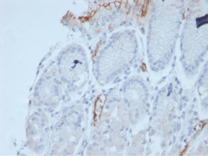 Positive Control: LS174T cells. Human small intestine (IHC).