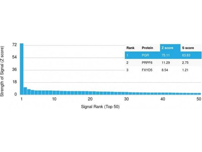 - Recombinant fragment of human Progesterone Receptor (PGR) protein (around aa 483-571) (exact sequence is proprietary)