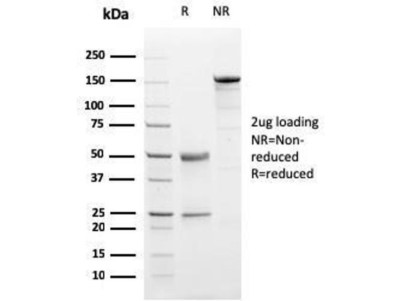 Known Application: Immunohistochemistry (Formalin-fixed) (1-2 μg/mL for 30 min at RT) (our BEST clone)(Staining of formalin-fixed tissues requires boiling tissue sections in 10 mM citrate buffer, pH 6.0, for 10-20 min followed by cooling at RT for 20 minutes)Optimal dilution for a specific application should be determined.